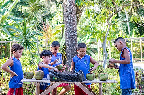 Assunto: Alunos da rede municipal de ensino cultivando hortaliças no Projeto Horta no Coco da Secretaria de Agricultura, Pecuária e Pesca da Prefeitura de Maricá / Local: Maricá - Rio de Janeiro (RJ) - Brasil / Data: 12/2018