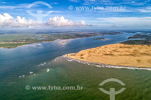 Assunto: Foto feita com drone da foz do Rio São Francisco no Pontal do Peba com trecho da APA de Piaçabuçu à direita - divisa entre Sergipe e Alagoas / Local: Brejo Grande - Sergipe (SE) - Brasil / Data: 05/2018