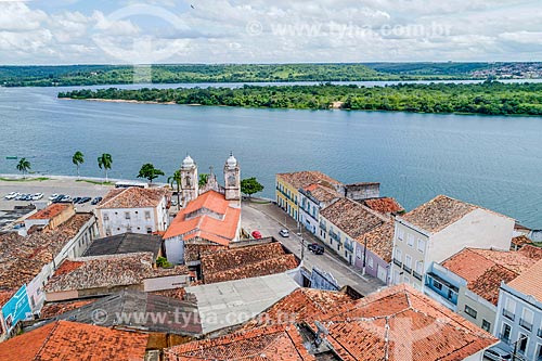 Assunto: Foto feita com drone da Igreja de Nossa Senhora da Corrente (1790) com o Rio São Francisco ao fundo / Local: Penedo - Alagoas (AL) - Brasil / Data: 05/2018