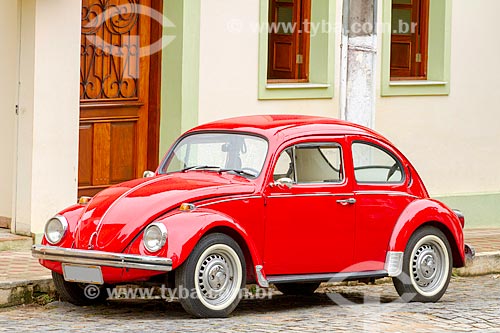 Assunto: Fusca estacionado em rua com calçamento de pedra / Local: Guarani - Minas Gerais (MG) - Brasil / Data: 11/2010