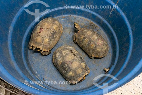 Assunto: Detalhe de jabutis-piranga (Chelonoidis carbonaria) no Centro de Triagem de Animais Silvestres (CETAS) da Floresta Nacional Mário Xavier / Local: Seropédica - Rio de Janeiro (RJ) - Brasil / Data: 05/2019