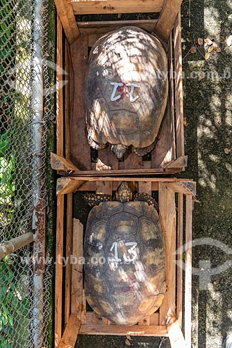 Assunto: Jabutis-piranga (Chelonoidis carbonaria) identificados com números no Centro de Triagem de Animais Silvestres (CETAS) da Floresta Nacional Mário Xavier / Local: Seropédica - Rio de Janeiro (RJ) - Brasil / Data: 05/2019