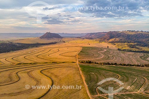 Assunto: Foto feita com drone de canavial com a Serra de Itaqueri ao fundo / Local: Santa Maria da Serra - São Paulo (SP) - Brasil / Data: 07/2019