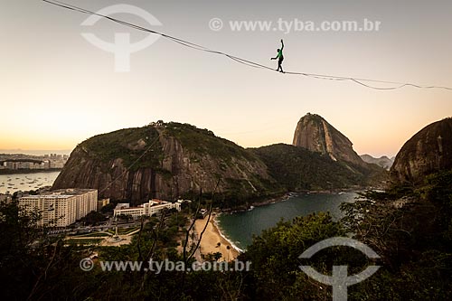 Assunto: Praticante de slackline com o Pão de Açúcar ao fundo durante o pôr do sol / Local: Urca - Rio de Janeiro - Rio de Janeiro (RJ) - Brasil / Data: 08/2019