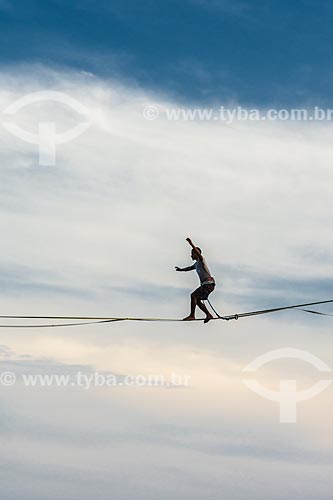 Assunto: Praticante de slackline na orla do Rio de Janeiro / Local: Leblon - Rio de Janeiro - Rio de Janeiro (RJ) - Brasil / Data: 11/2019