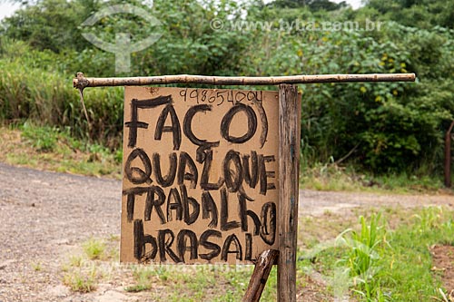 Assunto: Placa com erros de português oferecendo trabalho braçal / Local: Charqueada - São Paulo (SP) - Brasil / Data: 01/2020