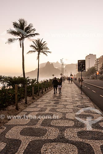 [+] gente, [+] pessoa, [+] paisagem, [+] natureza, [+] região sudeste, [+] litoral, [+] mar, [+] beira-mar, [+] orla, [+] Turismo, [+] entardecer, [+] lusco-fusco, [+] por do sol, [+] chão, [+] crepúsculo, [+] praia, [+] capital, [+] patrimônio mundial, [+] morro, [+] montanha, [+] Zona Sul, [+] morro Dois Irmãos, [+] calçadão, [+] Praia de Ipanema, [+] anoitecer, [+] relevo, [+] geografia, [+] formação rochosa, [+] Pedra Portuguesa, [+] acidente geográfico, [+] pavimento, [+] calçada portuguesa