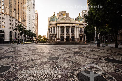 Assunto: Calçamento em Pedra Portuguesa na Cinelândia com o Theatro Municipal do Rio de Janeiro (1909) ao fundo / Local: Centro - Rio de Janeiro - Rio de Janeiro (RJ) - Brasil / Data: 04/2020