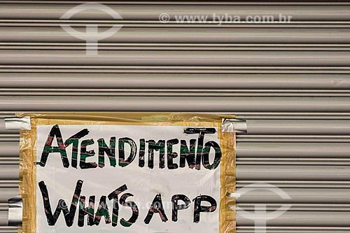 Assunto: Cartaz na porta de loja informando que só está funcionando por tele-entrega - Crise do Coronavírus / Local: Porto Alegre - Rio Grande do Sul (RS) - Brasil / Data: 05/2020