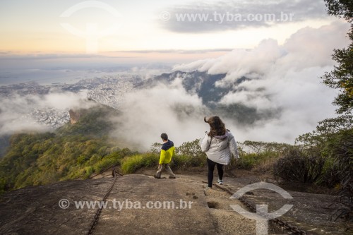 Assunto: Casal de turistas na escada de acesso ao Pico da Tijuca - Floresta da Tijuca - Parque Nacional da Tijuca / Local: Rio de Janeiro - Rio de Janeiro (RJ) - Brasil / Data: 08/2021