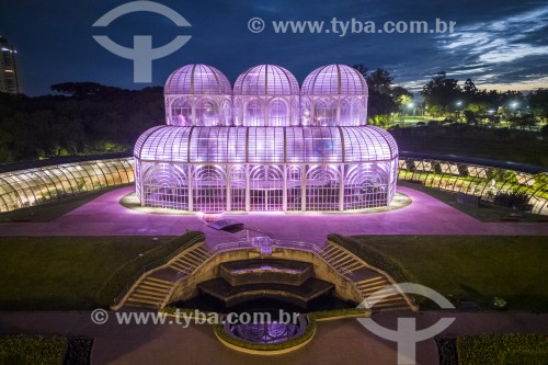 Assunto: Foto feita com drone da estufa de vidro no Jardim Botânico de Curitiba (Jardim Botânico Francisca Maria Garfunkel Rischbieter) à noite / Local: Jardim Botânico - Curitiba - Paraná (PR) - Brasil / Data: 02/2023
