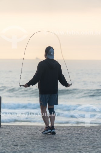 Assunto: Homem pulando corda na orla da Praia do Arpoador / Local: Ipanema - Rio de Janeiro - Rio de Janeiro (RJ) - Brasil / Data: 08/2023