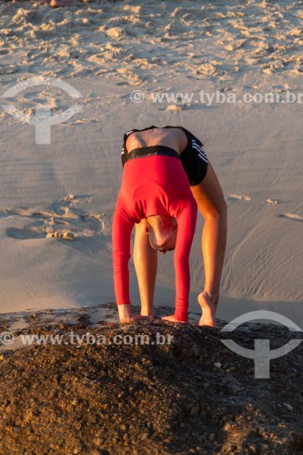 Assunto: Mulher fazendo acrobacia na Praia do Arpoador / Local: Ipanema - Rio de Janeiro - Rio de Janeiro (RJ) - Brasil / Data: 01/2024