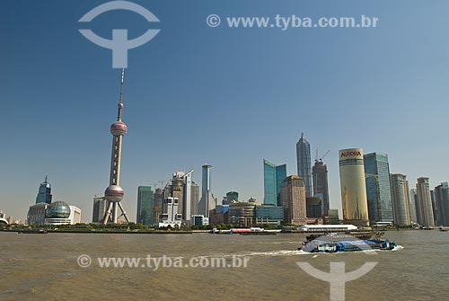 •  Assunto: Vista do Distrito de Pudong - Destaque para Torre de Televisão Pérola Oriental / Local: Xangai - China - Ásia / Data: 11/2006
