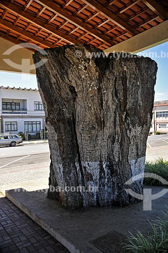 Monumento da Imbuia - pedaço de tronco de árvore como encontrado pelos primeiros colonos - na Praça João Macagnan - Água Doce - Santa Catarina (SC) - Brasil