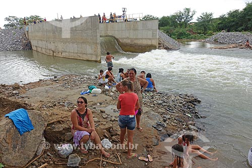 •  Pessoas observando o vertedouro despejando água no Rio Paraíba - Projeto de Integração do Rio São Francisco  - Monteiro - Paraíba (PB) - Brasil