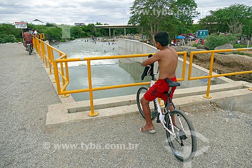 •  Menino observando o vertedouro despejando água no Rio Paraíba - Projeto de Integração do Rio São Francisco  - Monteiro - Paraíba (PB) - Brasil
