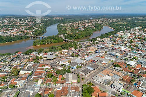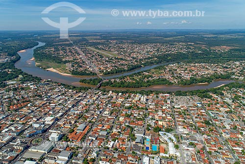 •  Foto feita com drone da ponte na Rodovia BR-070 com as cidades de Aragarças - à esquerda - Pontal do Araguaia e a Barra do Garças - à direita - divisa natural entre Mato Grosso e Goiás  - Barra do Garças - Mato Grosso (MT) - Brasil