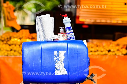 Produtos para higienização das pessoas que vão as compras no Mercadão do Produtor durante a quarentena - Crise do Coronavírus - Porto Alegre - Rio Grande do Sul (RS) - Brasil