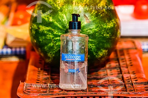 Álcool gel para higienização das pessoas que vão as compras no Mercadão do Produtor durante a quarentena - Crise do Coronavírus - Porto Alegre - Rio Grande do Sul (RS) - Brasil