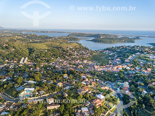 Foto feita com drone da Rua Álvares de Castro na orla da Lagoa de Araçatiba - Maricá - Rio de Janeiro (RJ) - Brasil