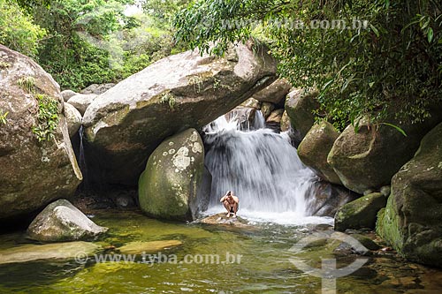Banhista no Poço do Sossego próximo ao Centro de Visitantes von Martius do Parque Nacional da Serra dos Órgãos - Guapimirim - Rio de Janeiro (RJ) - Brasil