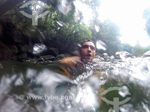 Banhista no Poço da Verde próximo ao Centro de Visitantes von Martius do Parque Nacional da Serra dos Órgãos - Guapimirim - Rio de Janeiro (RJ) - Brasil