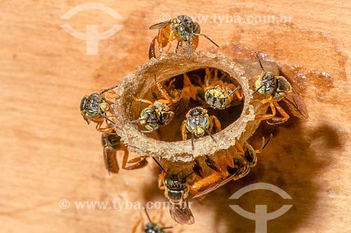 •  Detalhe de abelhas jataí (Tetragonisca angustula) - sem ferrão  - Paraná (PR) - Brasil