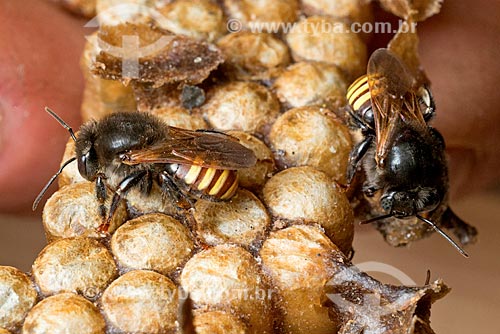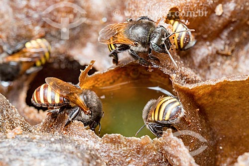 •  Detalhe de abelhas mandaçaia (Melipona quadrifasciata)  - Curitiba - Paraná (PR) - Brasil