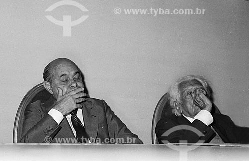 •  Tancredo Neves e Austregésilo de Athayde durante evento na Academia Brasileira de Letras (ABL)  - Rio de Janeiro - Rio de Janeiro (RJ) - Brasil