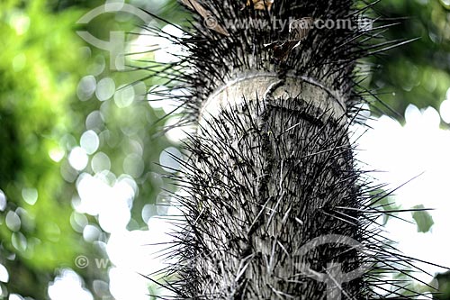 Detalhe do tronco do Tucumã (Astrocaryum aculeatum) - também conhecida como Acaiúra ou Tucum - próximo à Manaus - Manaus - Amazonas (AM) - Brasil