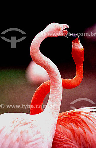 •  (Phoenicopterus ruber) Flamingo ou Flamengo, Maranhão, Guará, Ganso-do-norte ou Ganso-cor-de-rosa - dupla ou casal de pássaros se acariando - Brasil  - Mato Grosso - Brasil