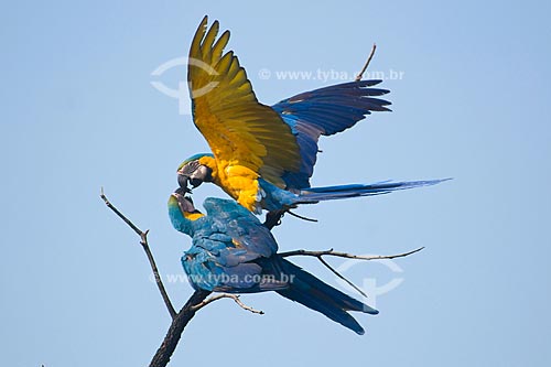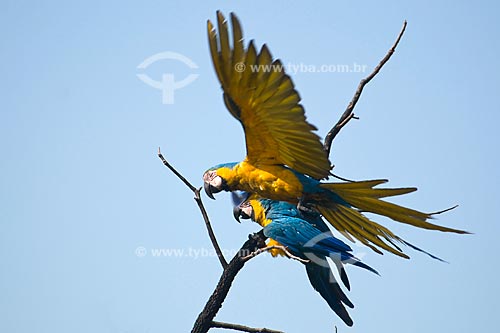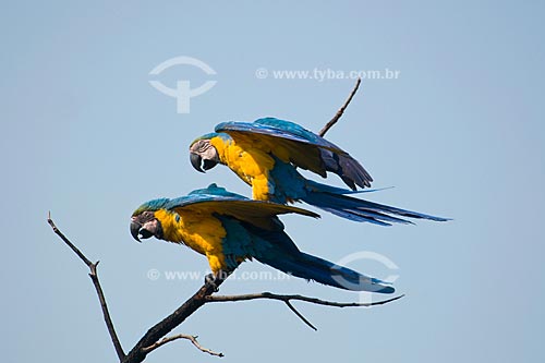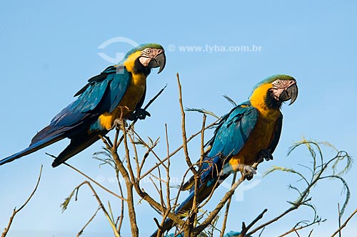 Assunto: Casal de araras-canindé (Ara ararauna) no Parque Nacional das Emas - Pantanal / Local: Parque Nacional das Emas - Mineiros - Goiás (GO) / Data: Outubro de 2008