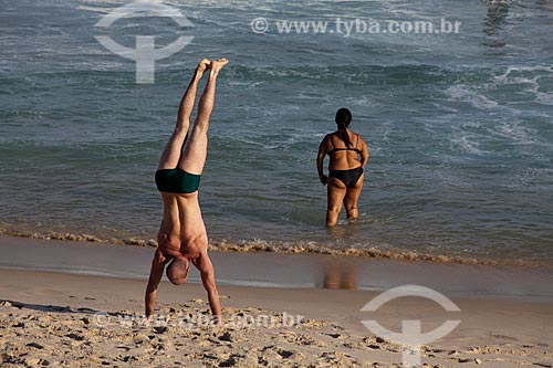 Assunto: Homem fazendo acrobacia na Praia de Ipanema / Local: Ipanema - Rio de Janeiro (RJ) - Brasil / Data: 05/2011