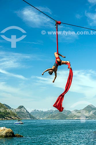 •  Acrobacia aérea com tecido próximo à Praia Vermelha com o Pão de Açúcar ao fundo  - Rio de Janeiro - Rio de Janeiro (RJ) - Brasil