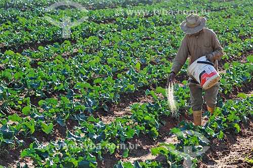 •  Assunto: Adubação manual na plantação de brócolis / Local: São José do Rio Preto - São Paulo (SP) - Brasil / Data: 05/2013