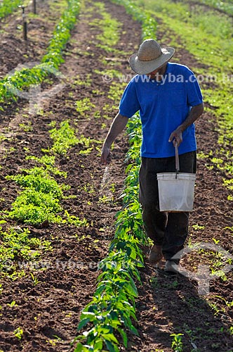 •  Assunto: Adubação manual na plantação de pimentão / Local: São José do Rio Preto - São Paulo (SP) - Brasil / Data: 05/2013