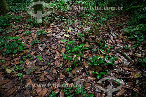 Folhas secas em decomposição sobre o solo em área de Mata Atlântica - São Sebastião - São Paulo (SP) - Brasil