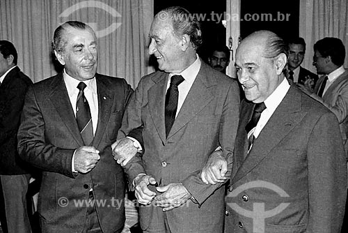 •  Tancredo Neves e Austregésilo de Athayde durante evento na Academia Brasileira de Letras (ABL)  - Rio de Janeiro - Rio de Janeiro (RJ) - Brasil