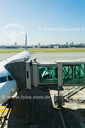 Avião e passarela de acesso a aeronaves no Aeroporto de Congonhas (1936) - São Paulo - São Paulo (SP) - Brasil