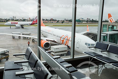 Vista de avião da GOL - Linhas Aéreas Inteligentes - a partir da área de embarque do Aeroporto de Congonhas - São Paulo - São Paulo (SP) - Brasil