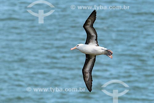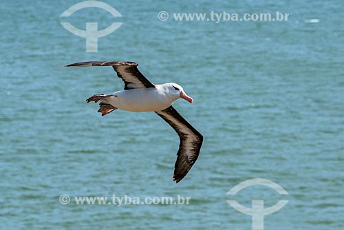 Detalhe de albatroz-de-sobrancelha (Thalassarche melanophris) voando no Estrecho de Magallanes (Estreito de Magalhães) - Província Terra do Fogo - Chile