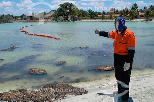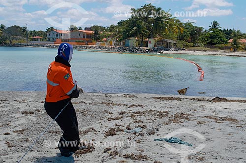 Fixação de barreiras para contenção de óleo na foz do Rio Timbó - Ilha de Itamaracá - Pernambuco (PE) - Brasil