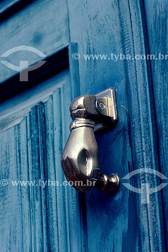 Detalhe de arquitetura - Aldrava, batente na forma de uma mão fechada