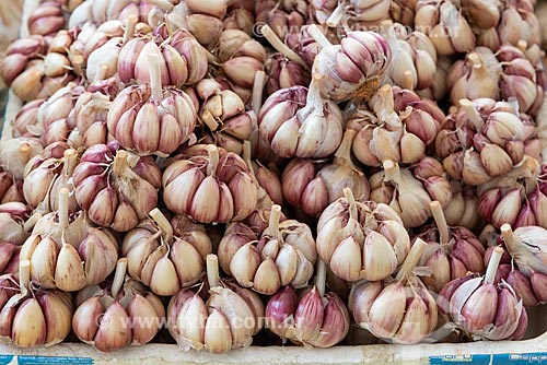 •  Detalhe de alho (Allium sativum) à venda na Feira livre da Praça Nicarágua  - Rio de Janeiro - Rio de Janeiro (RJ) - Brasil