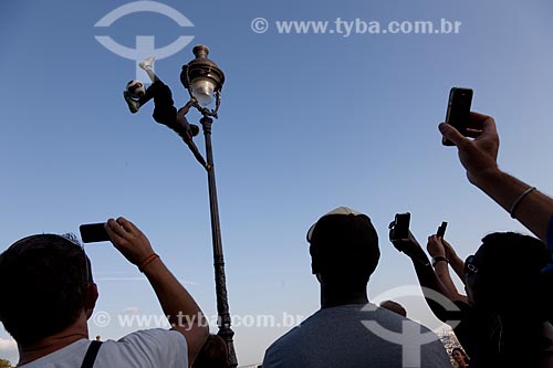 Assunto: Artista freestyler e jogador de futebol Iya Traoré se apresenta no alto de Montmartre proximo as escadarias da Igreja do Sacre Coeur diante de turistas / Local: Paris - França - Europa / Data: 08/2011