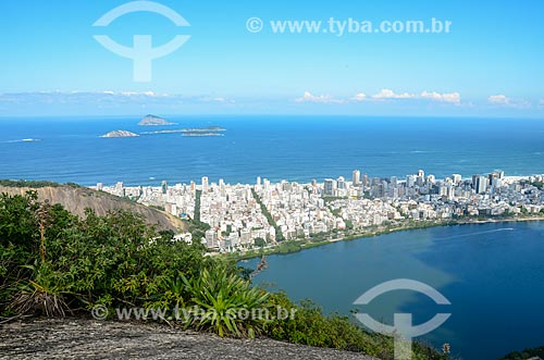 Vista da Lagoa Rodrigo de Freitas com os prédios de Ipanema e o Monumento Natural das Ilhas Cagarras a partir do Morro dos Cabritos - Rio de Janeiro - Rio de Janeiro (RJ) - Brasil
