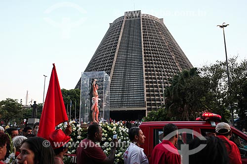 •  Procissão no festejo do dia de São Sebastião com a Catedral de São Sebastião do Rio de Janeiro ao fundo  - Rio de Janeiro - Rio de Janeiro (RJ) - Brasil