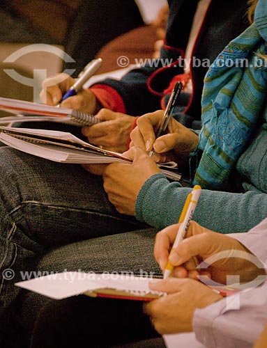 Assunto: Pessoas fazendo anotações durante retiro budista de aprofundamento da meditação / Local: Distrito de Araras - Petrópolis - Rio de Janeiro (RJ) - Brasil / Data: 05/2009