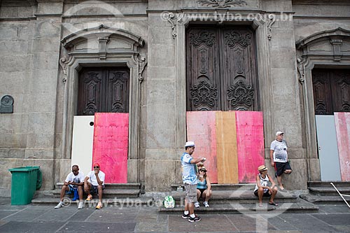 •  Tapume nas portas da Igreja de Nossa Senhora do Carmo (1770) - antiga Catedral do Rio de Janeiro - durante o desfile do bloco de carnaval de rua Cordão do Bola Preta  - Rio de Janeiro - Rio de Janeiro (RJ) - Brasil